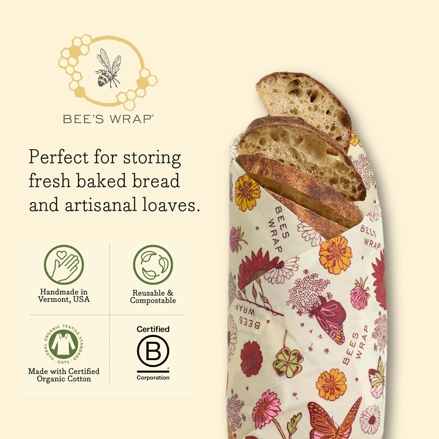 Our plastic-free bread wrap keeps loaves fresh and helps you take a small yet meaningful step to reduce single-use. Baking from scratch? Lightly dust with flour and use your bread wrap as a cover during proofing and a no-slip surface for rolling or kneading dough.