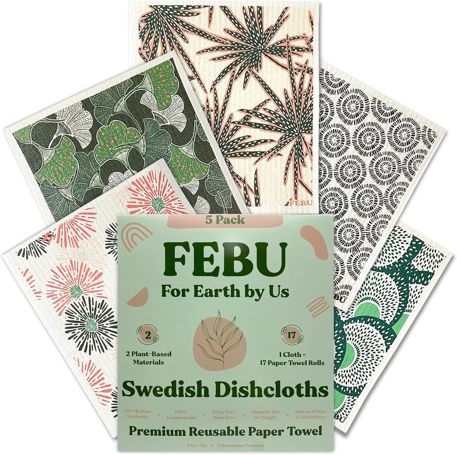 WASHABLE & REUSABLE — Try our Swedish sponge cloths for a sustainable kitchen. Reusable up to 50 washes, each washable Swedish cloth can replace 17 rolls of paper towels! That’s 85 rolls replaced per pack!