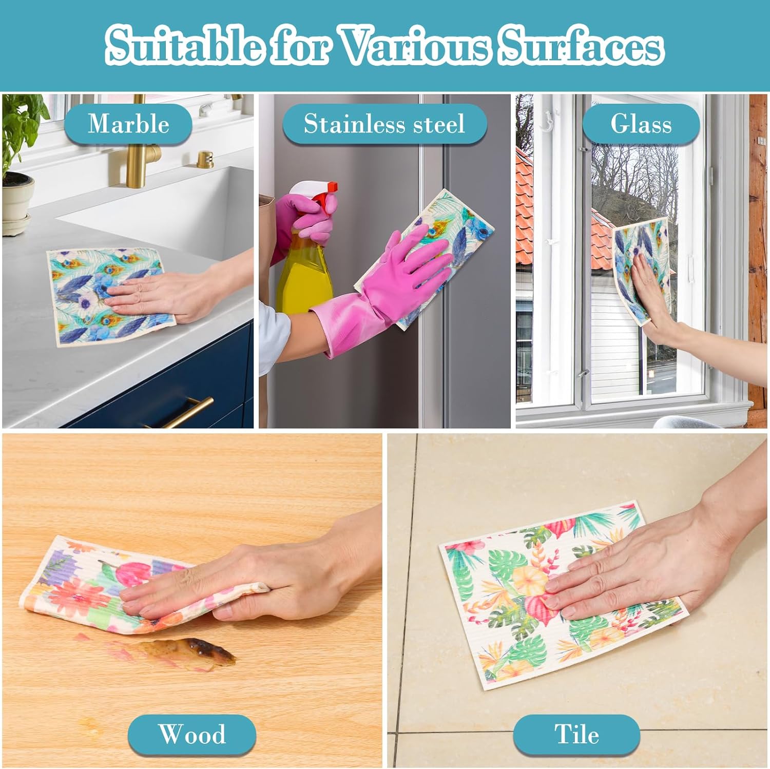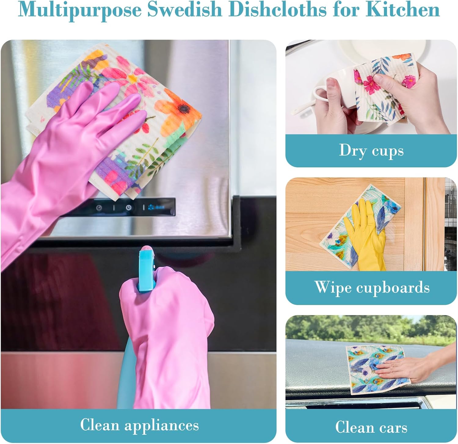 ๐๐ฐ๐๐๐ข๐ฌ๐ก ๐๐ข๐ฌ๐ก ๐๐ฅ๐จ๐ญ๐ก๐ฌ ๐๐๐ญ Swedish Kitchen dish cloths include 8 colorful patterns, which are printed for distinguish various use and matching home dรฉcor. Each of kitchen towels is 20 x 18 cm/ 8 x 7 inches, maximize drawer space and use this to wipe our counters stove, clean up house spills and easy to throw in washing machine for quick disinfecting.