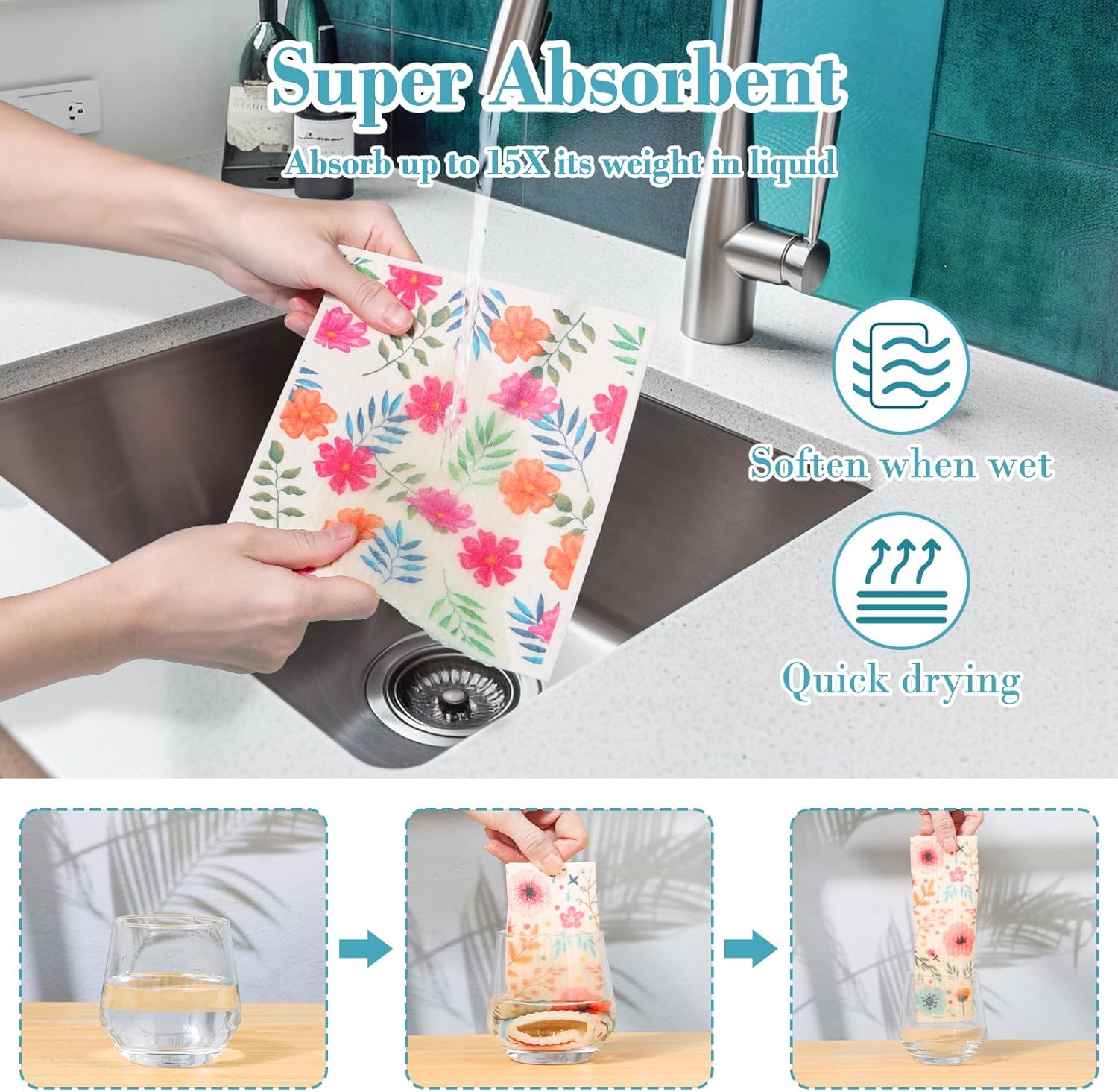 ๐๐๐ฎ๐ฌ๐๐๐ฅ๐ ๐๐ข๐ญ๐๐ก๐๐ง ๐๐ข๐ฌ๐ก ๐๐๐ ๐ฌ Made from Wood Pulp + Cotton, breathable and washable, these reusable cloths/ sponges/ towels soak up much more than a regular towel dishrag which will not leave streaks on the countertops, and they soak up stuff like flour much more easily than a traditional rag, great absorbance, soft smooth enough not to scratch surfaces but strong enough to get up grease and crumbs.