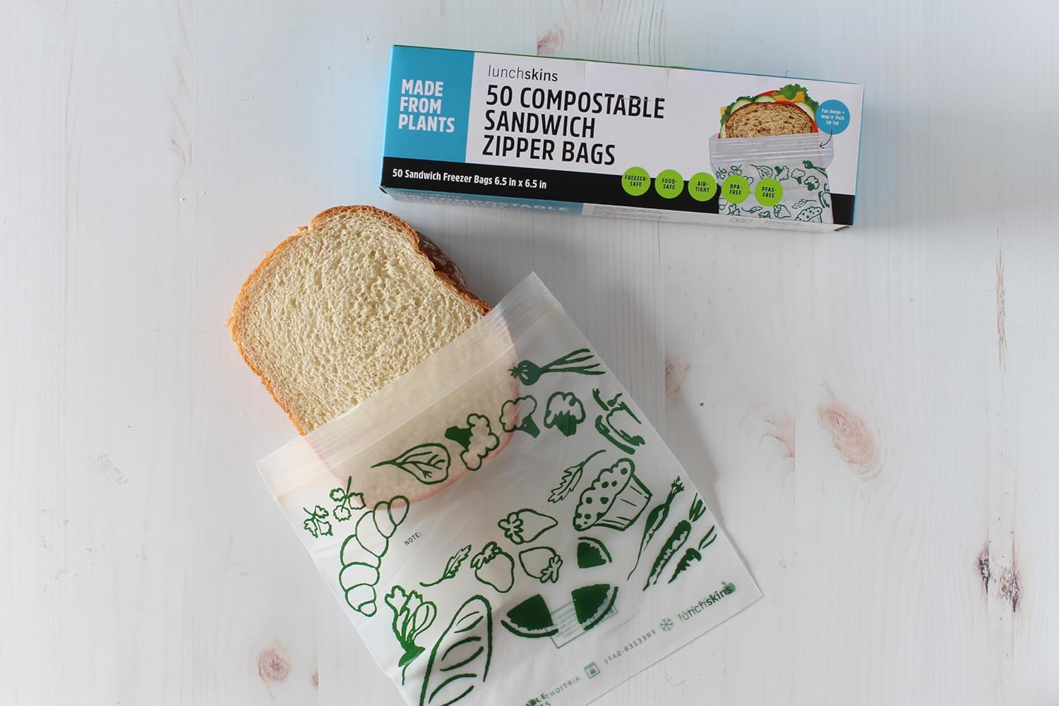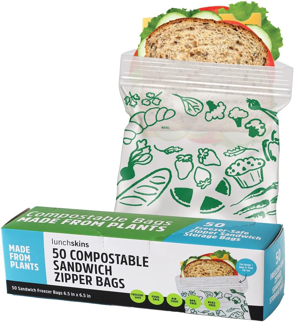 Never Use Plastic Bags Again! Sustainability + Convenience with Zero Sacrifice! Lunchskins compostable freezer-safe sandwich storage bags are made from food-safe, plant-based materials. Because, these bags are made from plants they are not completely transparent. Plant-based materials replace a portion of fossil fuel plastic with safe + compostable materials sourced from renewable resources. These plant-based bags are designed to handle all your storage needs. Perfect for sandwiches, soups, smoothies, travel items, snacks, leftovers, and much more. Our Freezer-Safe Ziptop Bags quickly and easily lock-in freshness. Durable and strong to prevent leaks so you can toss with ease. Depending on your use, they may also be reusable.