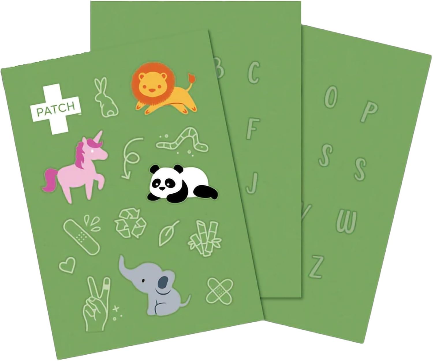 Containing: 10x Panda Bandage Strips 5x Unicorn Bandage Strips 5x Lion Bandage Strips 2x Large Square Panda Patches, and 2x Large Rectangle Panda Patches 5x Panda Bandage Dots