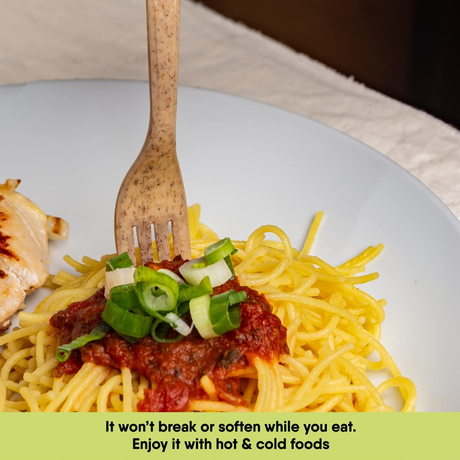 STURDY & LONG-LASTING – Our splinter-free, heavy-duty Forks work with both hot and cold foods and won’t break or soften during use. With a temperature range of 32°F/0°C to 302°F/150°C, they’re the perfect choice for any meal. Plus, they’re flavorless, making them an ideal eco-friendly alternative to traditional disposable cutlery.