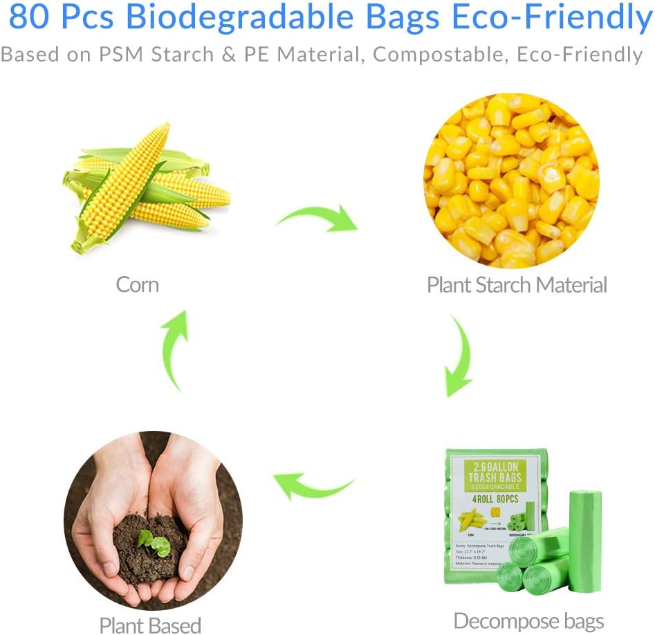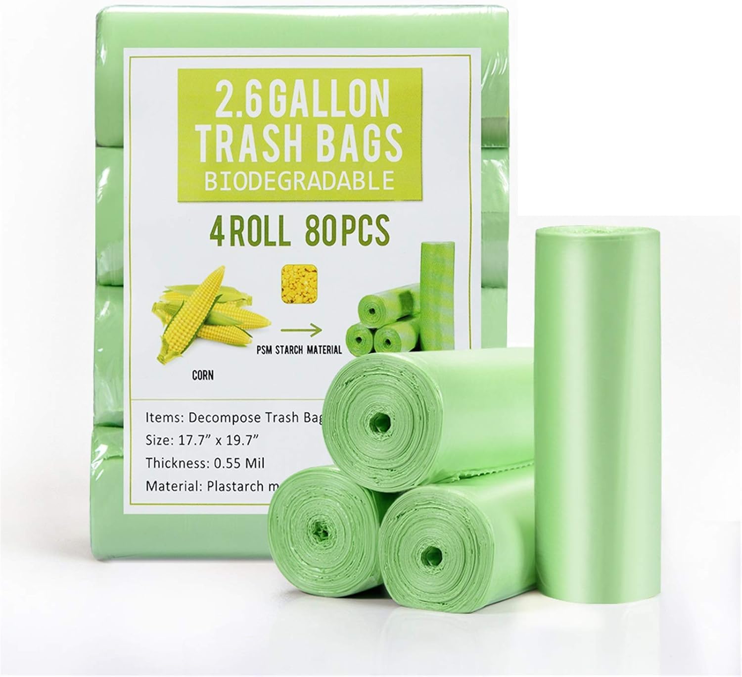 【Biodegradable Trash Bags】: These garbage bags are made of Plant Starch Material(PSM), which is degradable, more environmentally friendly and do work to reduce white pullotion on your every use.