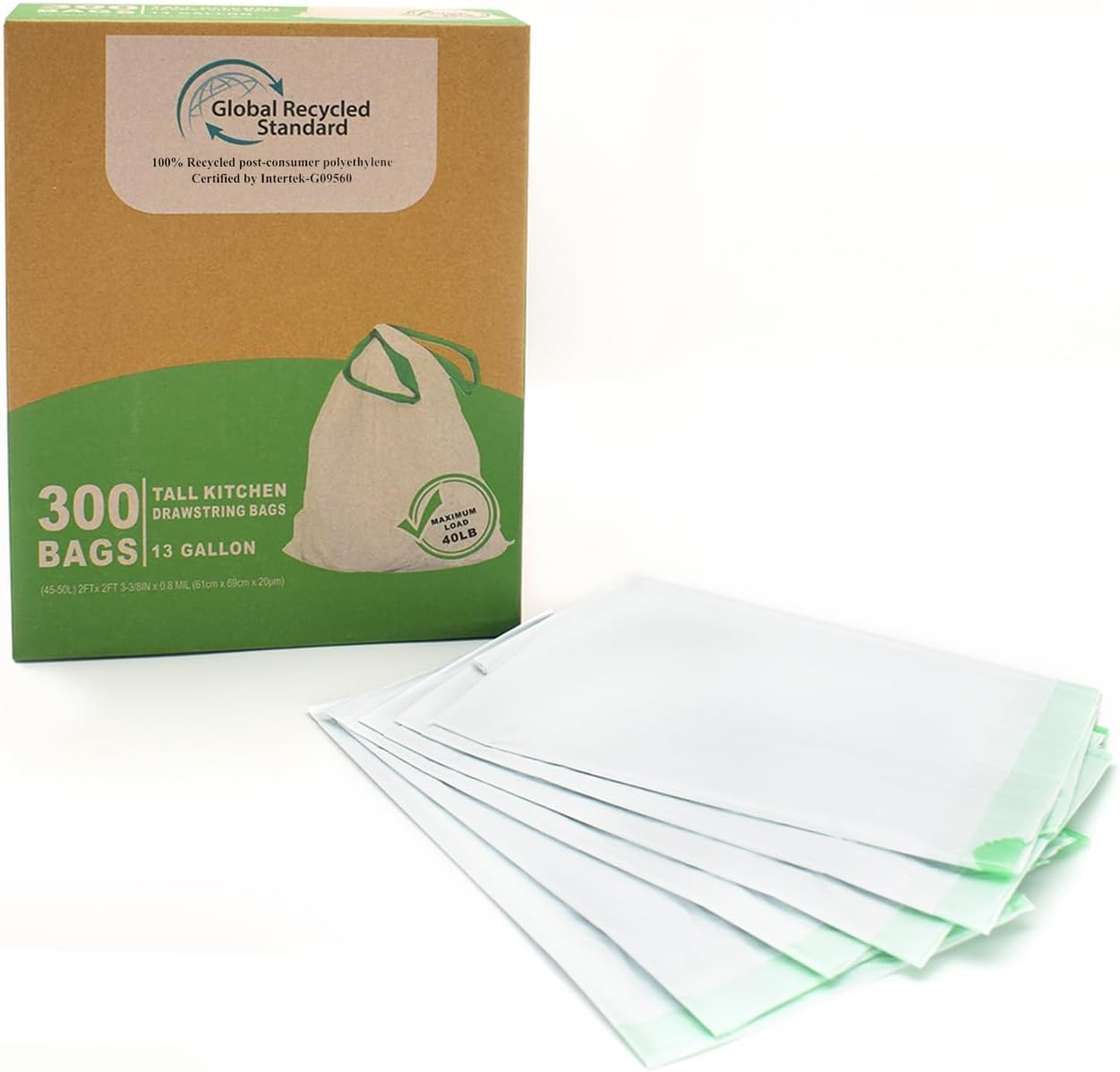 13 GALLON TRASH Bags: Includes 300 UNSCENTED 13 Gallon kitchen garbage bags.
